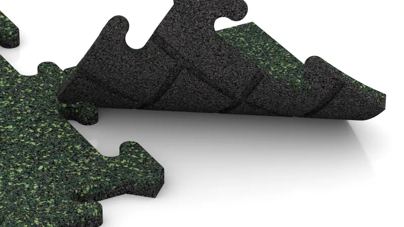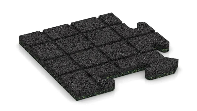 The Corner Tile HD provides a precise and durable corner finish for areas made with high-density tiles. Each unit represents a quarter of a complete puzzle tile: the inner sides feature the familiar interlock system and fit exactly into the overall layout, while the outer sides run straight to form clean finishing edges. The result is a robust and visually consistent frame around the entire surface.