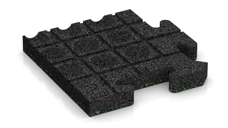 The Corner Tile HD provides a precise and durable corner finish for areas made with high-density tiles. Each unit represents a quarter of a complete puzzle tile: the inner sides feature the familiar interlock system and fit exactly into the overall layout, while the outer sides run straight to form clean finishing edges. The result is a robust and visually consistent frame around the entire surface.