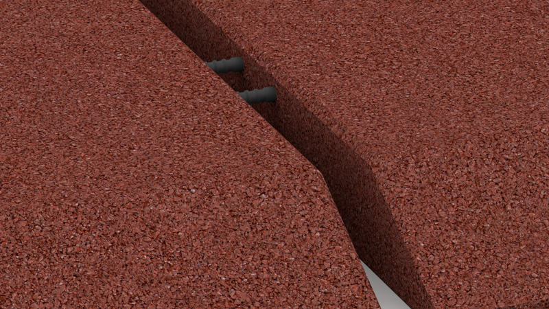A typical application case is a play island covered with fall protection tiles in a plastered pavement or an asphalted schoolyard. The corner tile is always stuck on the existing flooring.
