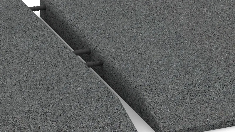 A typical application case is a play island covered with fall protection tiles in a plastered pavement or an asphalted schoolyard. The corner tile is always stuck on the existing flooring.