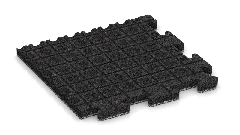 To ensure a surface is not only functional but also visually uniform, corner tiles must precisely match the other tiles. For this reason, they are produced exclusively from the same tiles that are manufactured for a customer’s order – with identical colour design, density and material. This guarantees a harmonious overall appearance. Corner tiles are therefore always produced as part of an order and delivered together with the matching tiles.