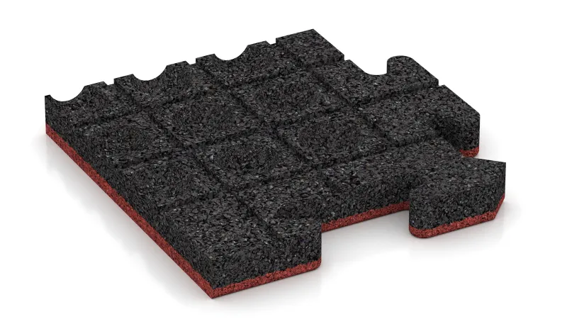 To ensure a surface is not only functional but also visually uniform, corner tiles must precisely match the other tiles. For this reason, they are produced exclusively from the same tiles that are manufactured for a customer’s order – with identical colour design, density and material. This guarantees a harmonious overall appearance. Corner tiles are therefore always produced as part of an order and delivered together with the matching tiles.