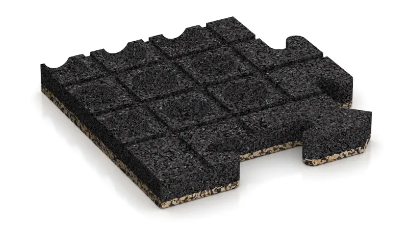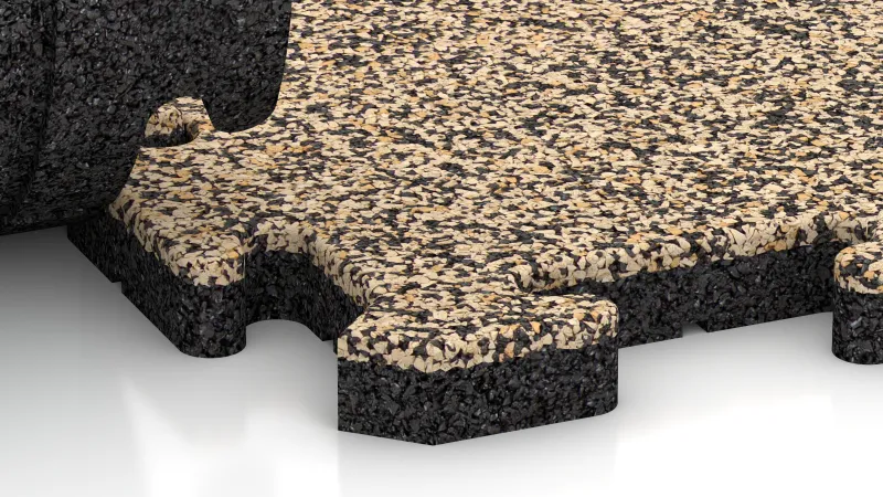 To ensure a surface is not only functional but also visually uniform, corner tiles must precisely match the other tiles. For this reason, they are produced exclusively from the same tiles that are manufactured for a customer’s order – with identical colour design, density and material. This guarantees a harmonious overall appearance. Corner tiles are therefore always produced as part of an order and delivered together with the matching tiles.