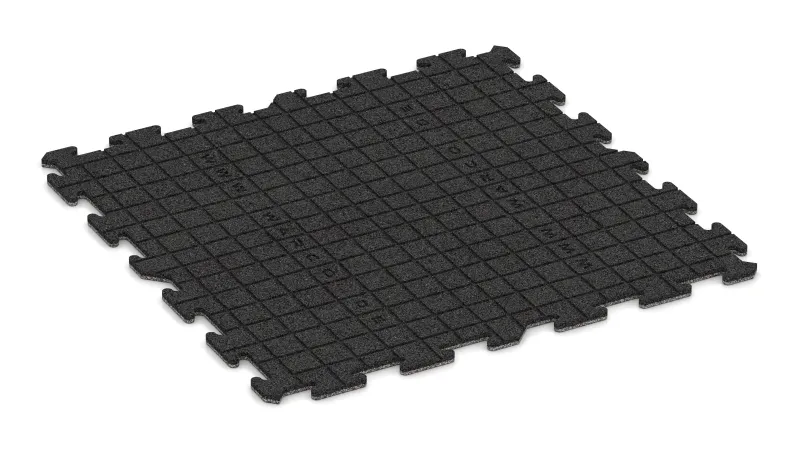 The all-round puzzle interlock connects the tiles securely to form a closed surface. Even without adhesive, the flooring remains dimensionally stable. It can be installed on solid bases, levels out small irregularities and, for outdoor events, can even be laid on a well-prepared grass surface. If required, tiles can be cut to size on site with a sharp knife, jigsaw or circular saw.