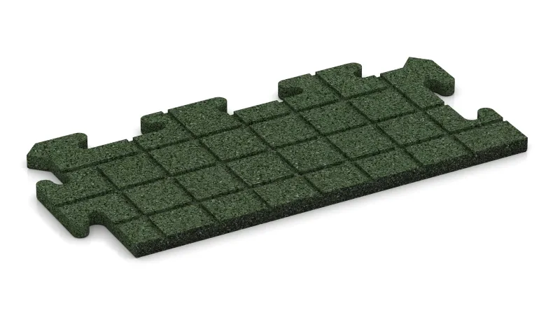 The Edge Tile HD ensures a precise and resilient border along the outer edges of surfaces made from high-density tiles. Each unit represents half of a complete puzzle tile: the inner side is equipped with the familiar puzzle interlock and fits perfectly with the other tiles, while the outer side forms a smooth, straight finishing edge. This provides the entire surface with a functional and visually appealing frame.