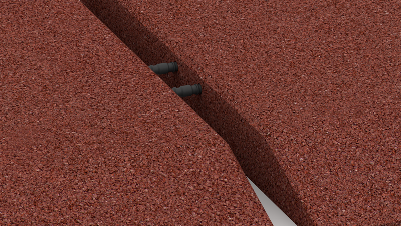 A typical application case is a play island covered with fall protection tiles in a plastered pavement or an asphalted schoolyard. The edge tile is always stuck together with the underfloor and stabilised with a rubber granulate tile surface.