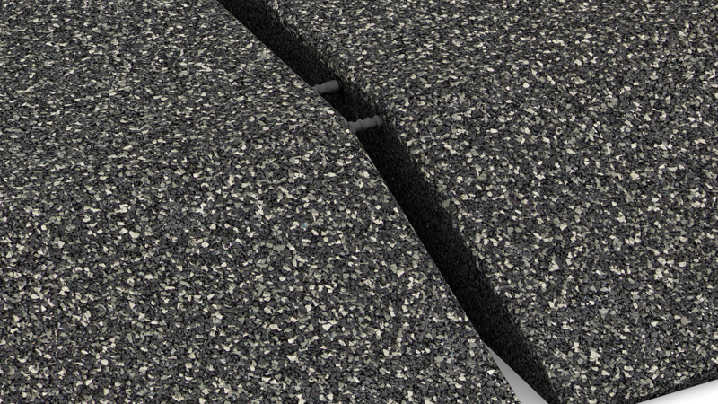 A typical application case is a play island covered with fall protection tiles in a plastered pavement or an asphalted schoolyard. The edge tile is always stuck together with the underfloor and stabilised with a rubber granulate tile surface.