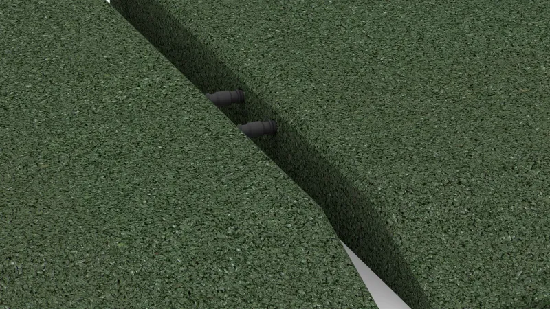 A typical application case is a play island covered with fall protection tiles in a plastered pavement or an asphalted schoolyard. The edge tile is always stuck together with the underfloor and stabilised with a rubber granulate tile surface.