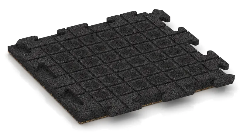 Panels are available in 50 × 50 cm and 100 × 100 cm formats, with thicknesses of 3 or 4 cm. A key feature is the hidden puzzle joint built into each panel. It locks the panels securely together to form a stable, load-bearing floor surface – with no need for glue, screws or clamps.