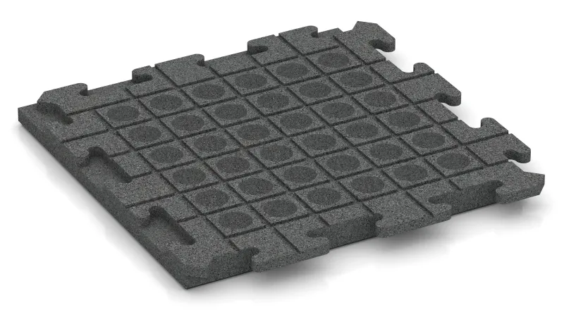 Panels are available in 50 × 50 cm and 100 × 100 cm formats, with thicknesses of 3 or 4 cm. A key feature is the hidden puzzle joint built into each panel. It locks the panels securely together to form a stable, load-bearing floor surface – with no need for glue, screws or clamps.