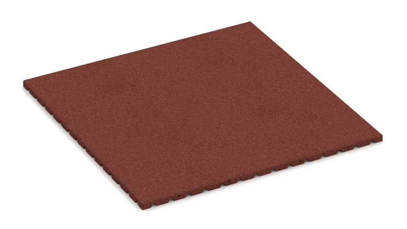 Made of PU-bonded rubber granules, the mat features a heavily profiled back that works as a progressive damping system. On impact, the surface compresses elastically, absorbs the energy, protects joints and immediately returns to its original shape.