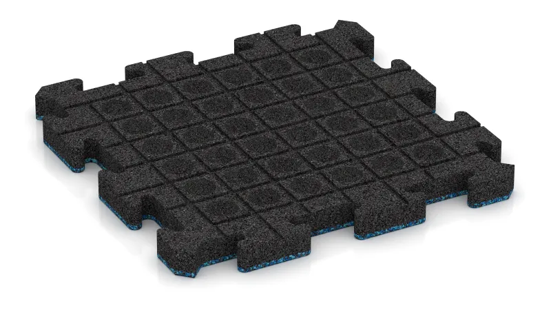 All-round puzzle interlock. The tiles are connected by an all-round moulded puzzle interlock with a slight chamfer. When laid floating, the teeth fit precisely into each other, creating a stable and dimensionally secure surface. Cutting edge pieces is straightforward with a jigsaw or circular saw.