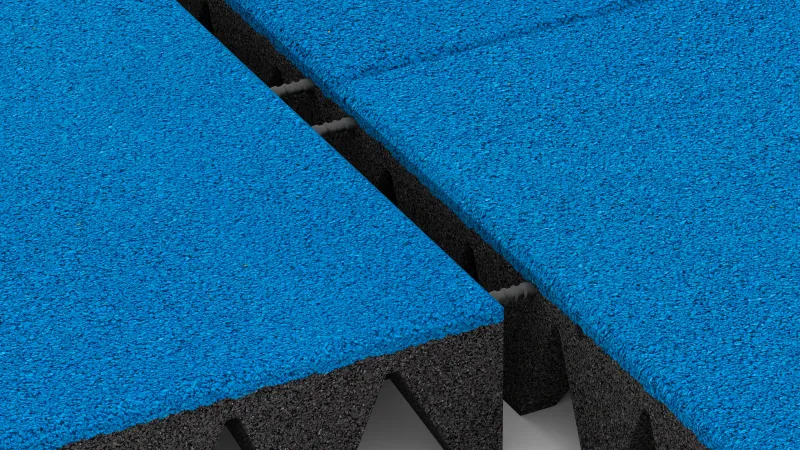A loose, elastic base layer can help improve impact absorption. However, it is not taken into account when determining the certified fall height. On hard surfaces such as asphalt or concrete, the full impact protection must be provided by the tile itself. This is why Playground Safety Mats and Tiles are tested in accordance with EN 1177 on concrete.