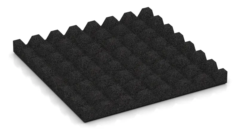 The open-pored surface made of coloured EPDM granules is UV-stable, abrasion-resistant and slip-resistant – even on wet ground. Thanks to its pleasant texture, the tile is ideal for barefoot or seated use. The underside is made of profiled ELT granulate with inverted pyramid shapes that provide impact absorption, promote drainage and allow the surface to dry quickly.