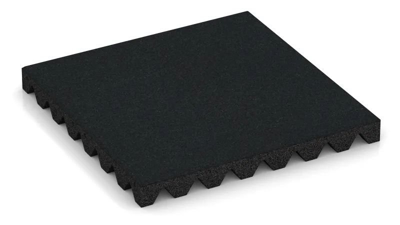 The open-pored EPDM surface is slip-resistant, UV-resistant and abrasion-resistant – even on wet ground. Thanks to its pleasant texture, the tile is ideal for areas with direct skin contact. The underside of the tile is structured with moulded inverted pyramid shapes. These optimise shock absorption and enable rapid drainage during rain, helping to prevent standing water and keeping the play area dry and ready for use.