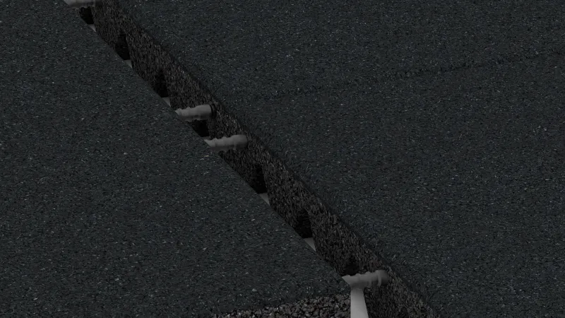 For outdoor installations, WARCO recommends a long-term stable, water-permeable base layer. Proven options include plastic ground reinforcement grids (gravel stabilisation panels) or an existing bound and porous sub-base such as porous concrete. If the base is not permeable, exposed surfaces must include a drainage gradient of at least 1.5 %. Installation on loose materials like sand, gravel or crushed stone is not recommended, as these tend to shift under resilient rubber tiles.