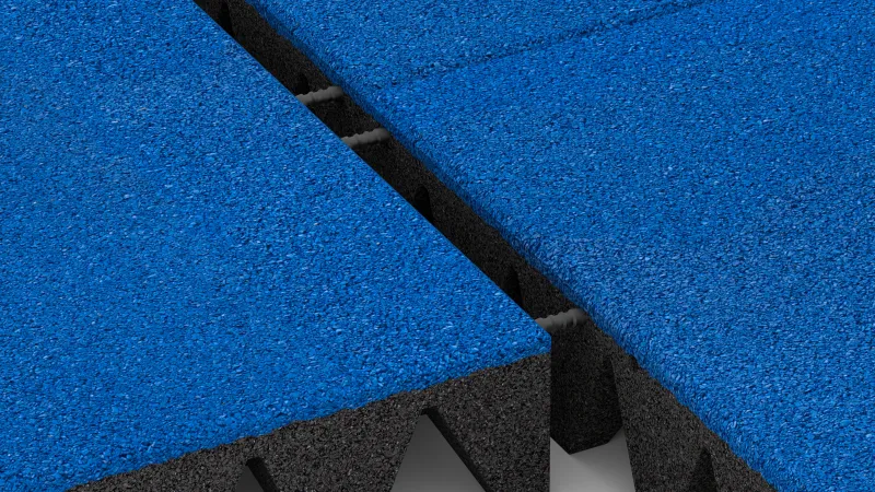 A loose, elastic base layer can help improve impact absorption. However, it is not taken into account when determining the certified fall height. On hard surfaces such as asphalt or concrete, the full impact protection must be provided by the tile itself. This is why Playground Safety Mats and Tiles are tested in accordance with EN 1177 on concrete.