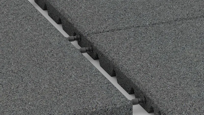 For outdoor installations, WARCO recommends a long-term stable, water-permeable base layer. Proven options include plastic ground reinforcement grids (gravel stabilisation panels) or an existing bound and porous sub-base such as porous concrete. If the base is not permeable, exposed surfaces must include a drainage gradient of at least 1.5 %. Installation on loose materials like sand, gravel or crushed stone is not recommended, as these tend to shift under resilient rubber tiles.
