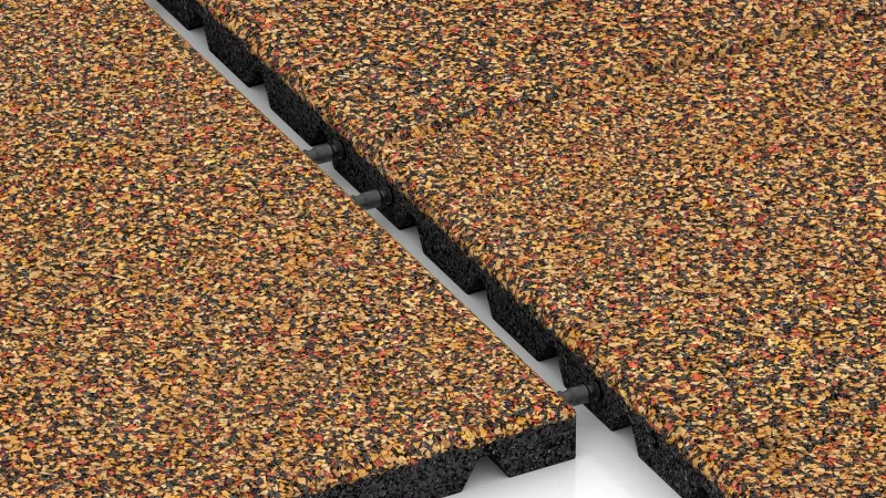 A loose, elastic base layer can help improve impact absorption. However, it is not taken into account when determining the certified fall height. On hard surfaces such as asphalt or concrete, the full impact protection must be provided by the tile itself. This is why Playground Safety Mats and Tiles are tested in accordance with EN 1177 on concrete.