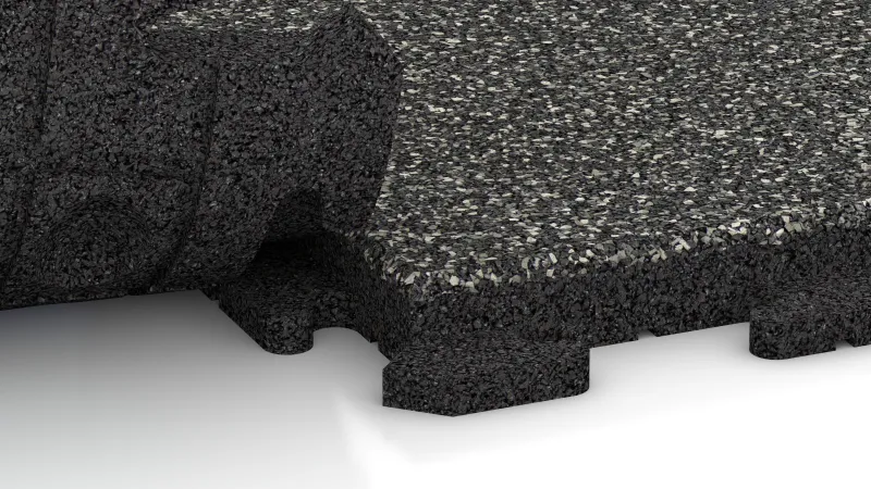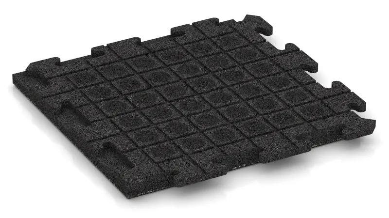 Each tile consists of two layers: a several-millimetre-thick top layer made of fully coloured, pollutant-free EPDM rubber granulate, and a supporting base layer made of black ELT rubber granulate recycled from car tyres. This structure ensures elasticity, stability and safety, while also being resistant to UV radiation and chlorinated water.