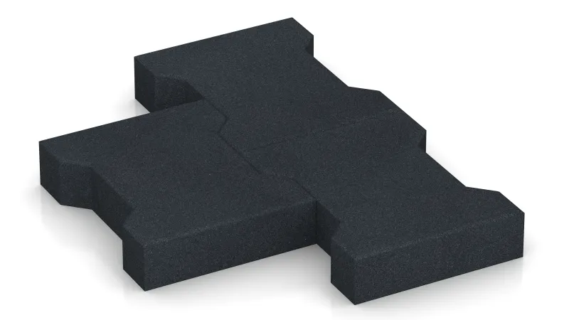 WARCO’s rubber interlocking paver is made from PU-bonded ELT rubber granulate (ELT = End of Life Tyres). Each unit uses the familiar H/double-T (BEHATON) profile, so the surface matches the look of conventional concrete paving and can be combined with it. The key difference is the material: elastic rubber granulate brings a different set of benefits to hard concrete.