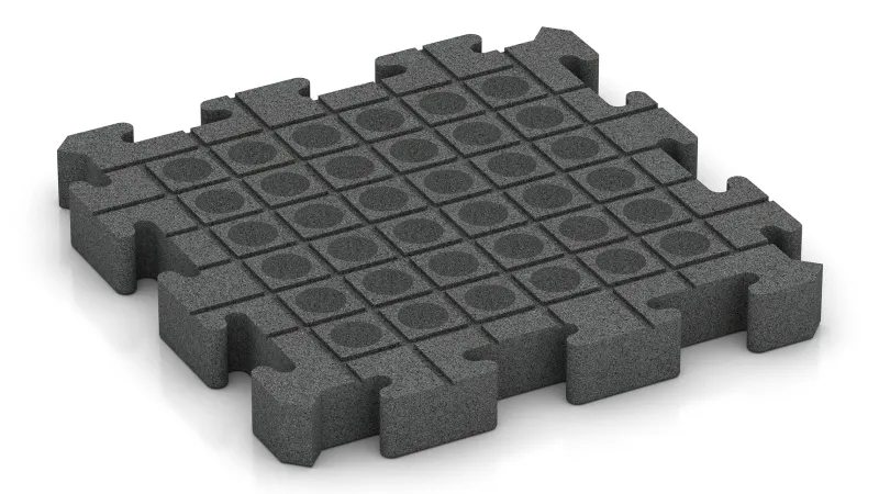 Each tile features a full-depth interlocking puzzle profile around all four sides. This design creates a secure, form-fitting connection that keeps the tiles firmly linked across the surface. The symmetrical interlock allows any side to connect with any other, simplifying installation and ensuring clean, consistent joints. The tiles can also be lifted and reused without damage.