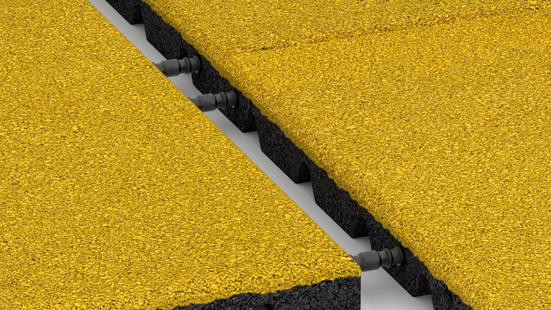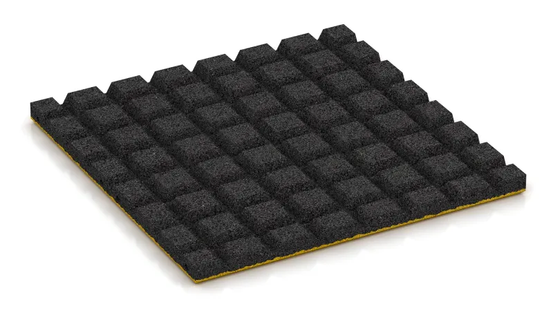 As with wood and other materials, rubber granulate tiles can undergo slight dimensional changes. Due to temperature fluctuations or temporary moisture absorption, the material may expand or contract slightly – a natural effect.