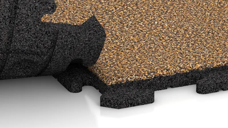 As with wood and other materials, rubber granulate tiles can undergo slight dimensional changes. Due to temperature fluctuations or temporary moisture absorption, the material may expand or contract slightly – a natural effect.