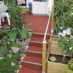 A stair covering from WARCO fulfills these requirements and much more. This is because it is made of PU-bonded rubber granules and has a rough, slightly grainy surface with a good grip. This makes it naturally non-slip. And that in both wet and dry conditions. This stair covering also drains water quickly and the surface dries quickly.